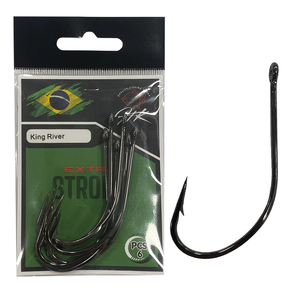 O Anzol King River Preto da HK é um produto de alta qualidade e resistência, com acabamento em niquelado preto e conta com afiação feita quimicamente. Esse anzol garante a máxima eficiência na pescaria.
