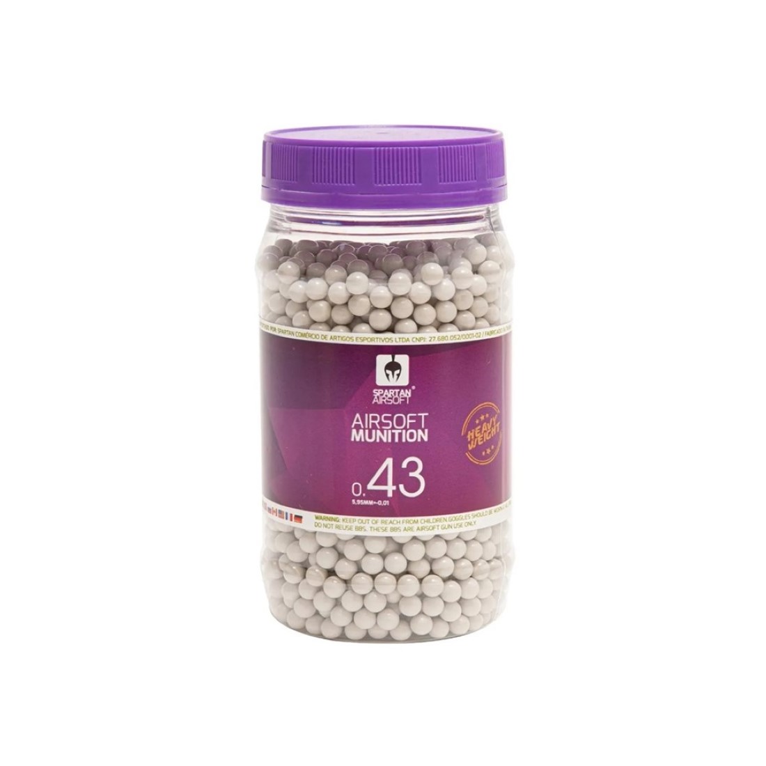O modelo com gramatura de 0.43g, é recomendada para uso em Rifles Snipers com um maior desempenho em Fps ou Rifles Elétricos (AEG) com upgrades. Sua embalagem acompanha 1000un. de esferas com gramatura de 0.43g.