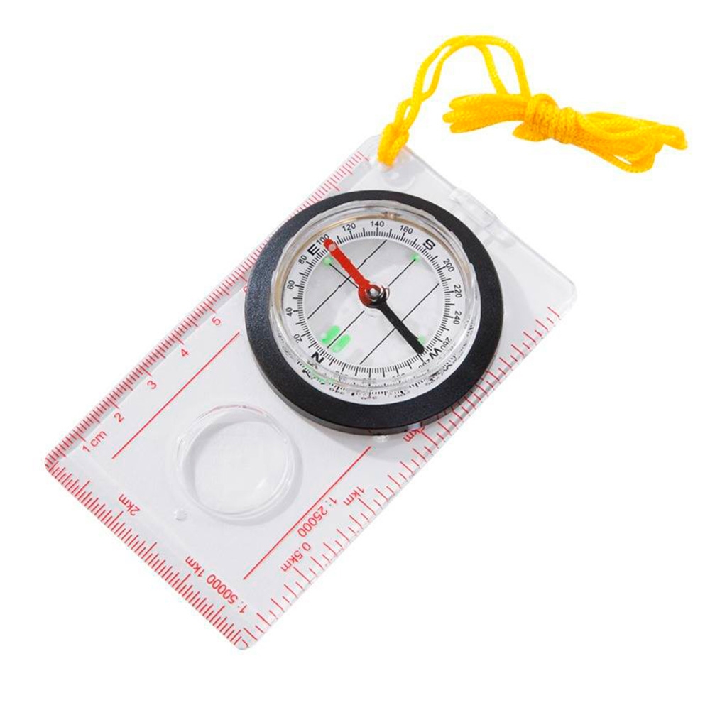 Com lente de aumento para mapas e indicações essa bússola conta com liquido estabilizador, régua para auxiliar o cálculo de distância, e cordinha para transporte.