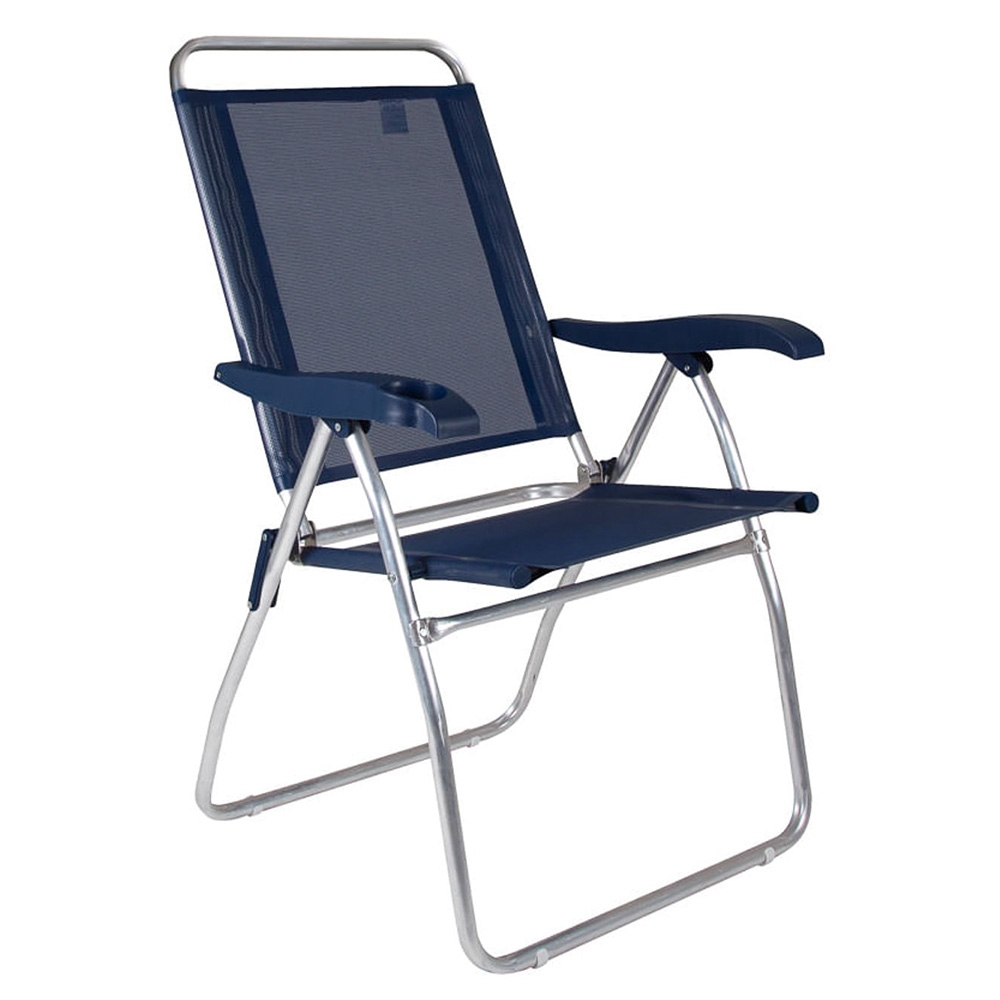 Sua capacidade suporta até 110 kg, com estrutura robusta em alumínio e rebites em aço de alta qualidade, sapatas antiderrapantes que oferecem maior segurança em qualquer tipo de piso. Tela em sannet liso com proteção UV e antimofo, resistente às intempéries e de fácil limpeza.