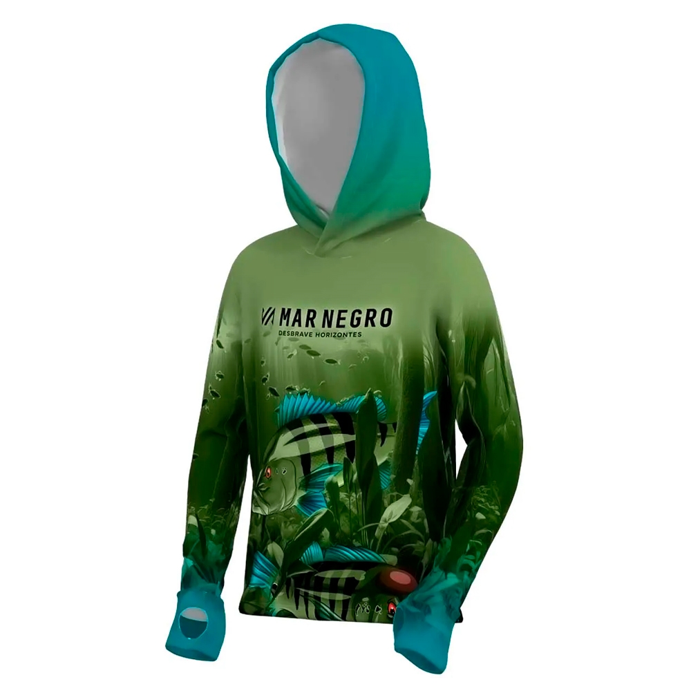 Apresentamos a Camiseta Infantil X Protection Tucuna Family - Mar Negro, sendo uma peça de vestuário ideal para os amantes da pesca esportiva, pois oferece proteção contra os raios solares e conforto térmico.