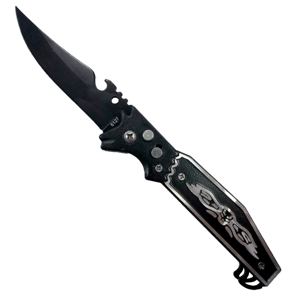 O Canivete Automático 6127 Cabo Aluminio 21cm Com Clip - Master é a escolha perfeita para quem busca praticidade, resistência e desempenho superior em um único equipamento. Com design moderno e construção robusta, ele atende tanto ao uso cotidiano (EDC) quanto às exigências de atividades outdoor como camping, pesca e trilhas.