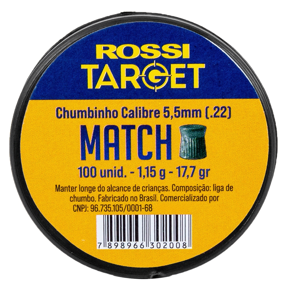- Modelo: Chumbinho Match 5,5mm 1,15G 17,7Gr 100un Target - Rossi