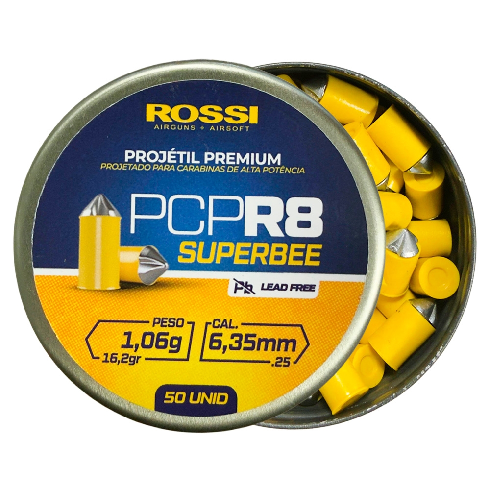 - Modelo: Chumbinho PCP R8 Superbee 6.35 mm 1.06g 16.2gr 50un - Rossi