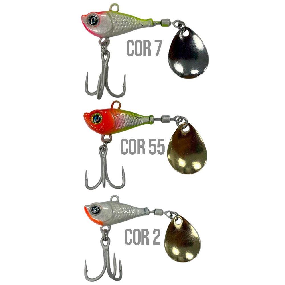 Fabricada em Zinco e Aço. O Jig Vyper é uma isca do tipo “spin tail” populamente conhecida como “ferrinho” possui corpo metálico, ação sinking (afundante), uma garateia reforçada no centro e uma colher na traseira.