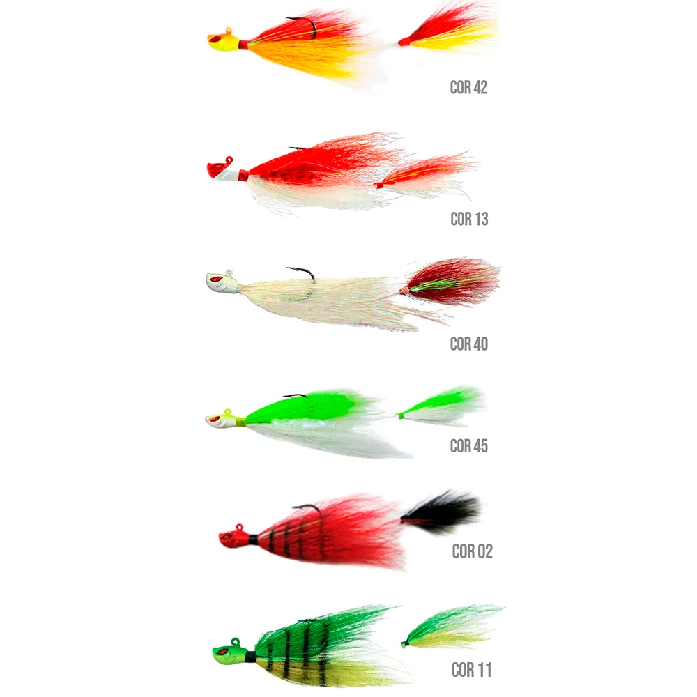 Isca Artificial Killer Jig é fabricado em bucktail super resistentes aos ataques até de peixes com dentição também possui um anzol reforçado de 6/0, com cores atrativas uma cabeça desenvolvida em 3d, seu tamanho é de 19cm e seu peso de 17g.