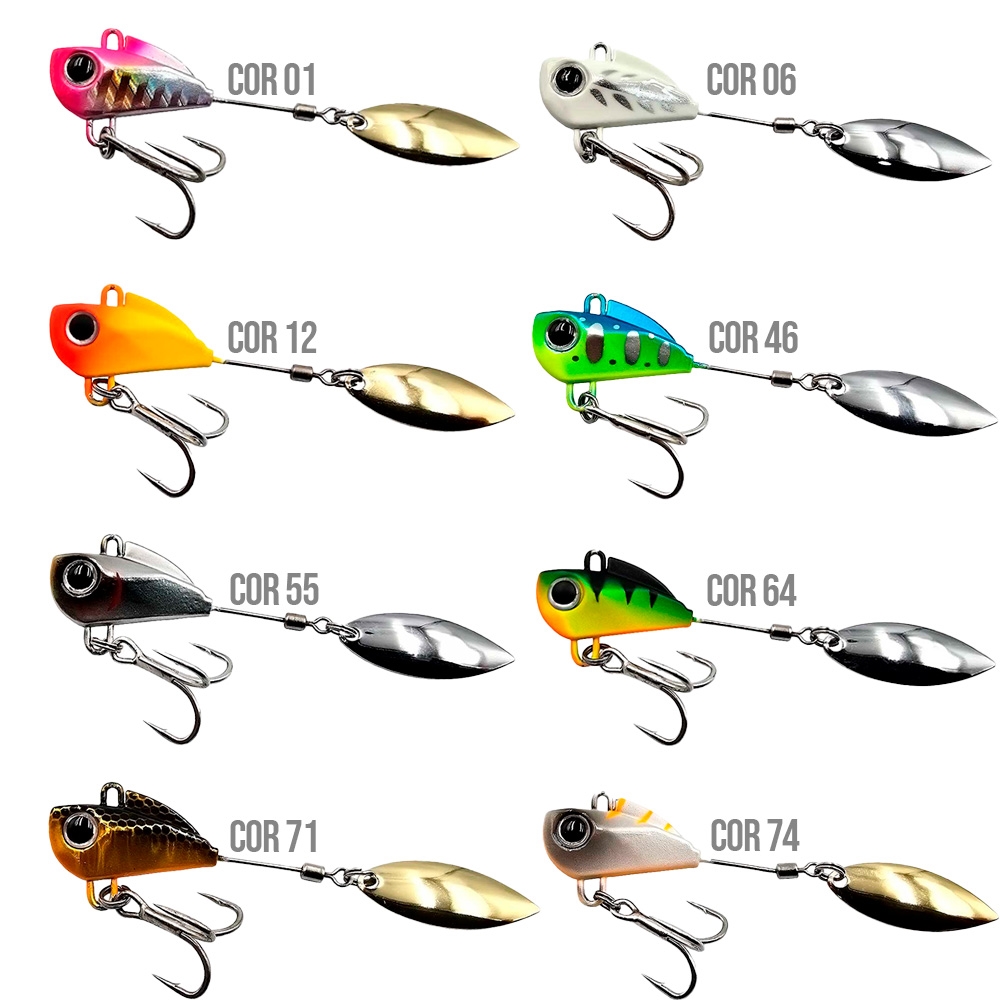 Fabricada em Chumbo. O little Spin é uma isca do tipo “spin tail” populamente conhecida como “ferrinho” possui corpo Chumbo, ação sinking (afundante), uma garateia reforçada no centro e uma colher Estilo Folha giratória na traseira.