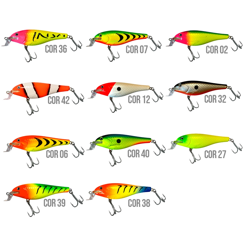 Essa isca também possui um nado diferenciado. Já suas cores são diferenciadas e extremamente atraentes, chamando ainda mais a atenção de peixes como Dourado, Tucunaré, Traíra, Cachorra, Bicuda, Robalo entre outros peixes.