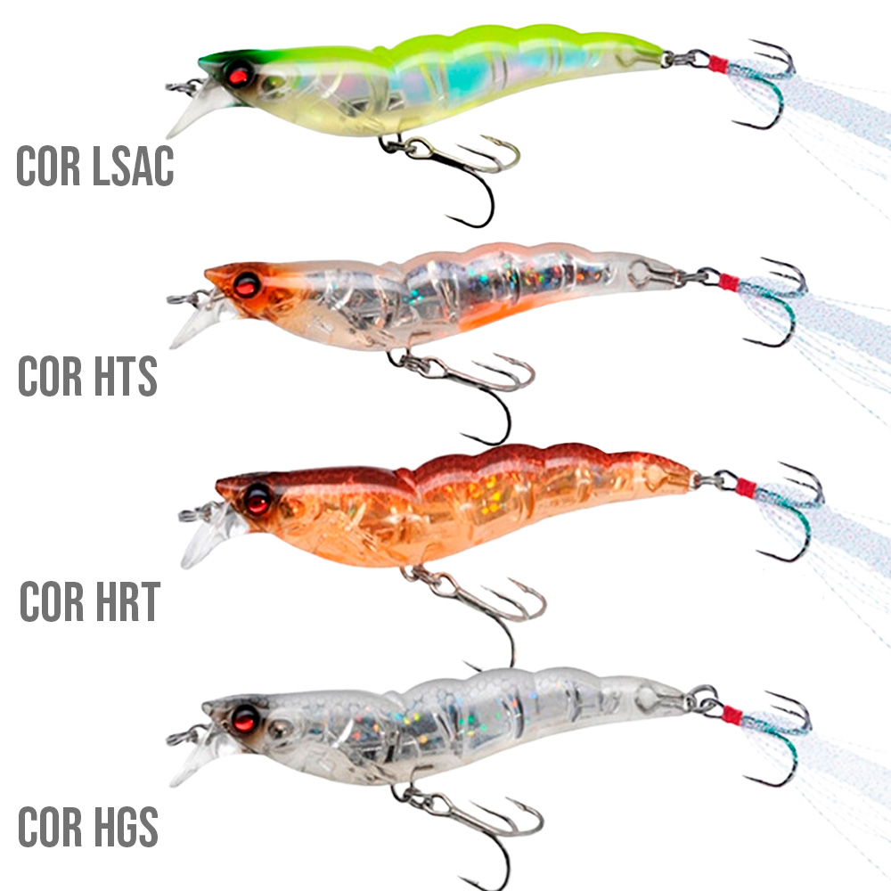 A Crystal 3D Shirimp possui peso de 6,5g que a torna Floating, tendo 7 cm de comprimento de corpo equipada com duas garateias.