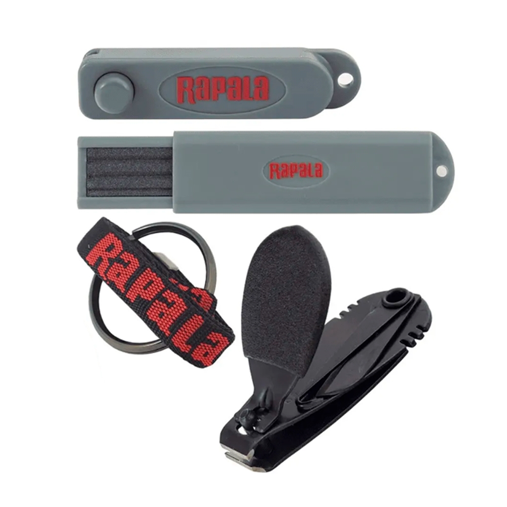 O Kit Corta Linhas, Afiador e Cortador 51RARCLP1 da Rapala é um conjunto compacto e extremamente funcional, desenvolvido para oferecer praticidade ao pescador em qualquer situação. Projetado para ser utilizado com frequência durante a pescaria, o kit reúne ferramentas essenciais em um único acessório, cortador de linhas, afiador de anzóis e garatéias, além de itens auxiliares que facilitam o ajuste de iscas e manutenção do equipamento.