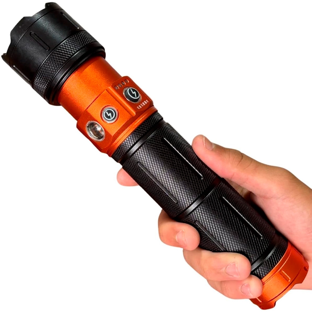 Equipada com LED OptiRay Quad-Core e sistema QuadLumen™, entrega um feixe intenso, preciso e ajustável, alcançando até 2.000 metros de distância graças ao zoom telescópico, que permite alternar entre feixe concentrado (longa distância) ou iluminação ampla de área.