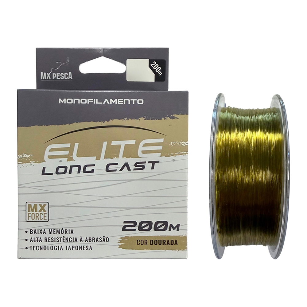 - 01 Linha Monofilamento Elite Long Cast 200m Dourada - MX Pesca