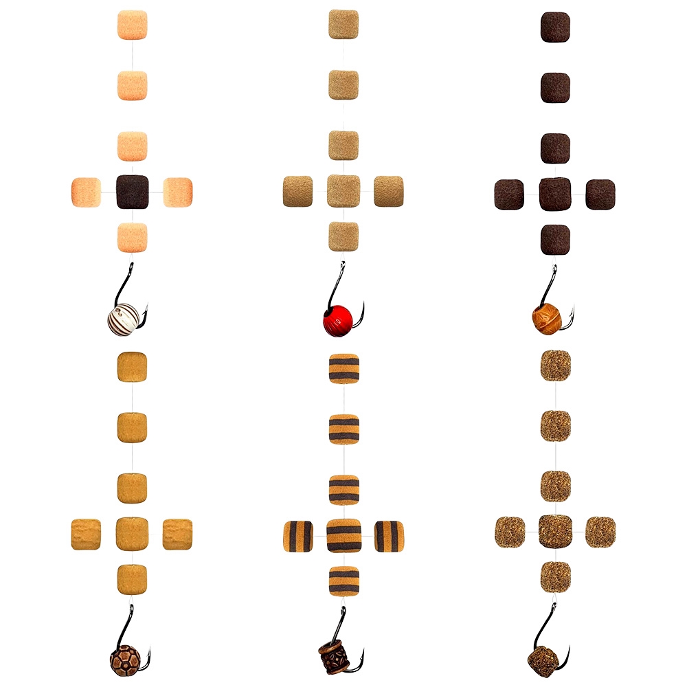 Seu sistema é composto por 7 EVAs boleados de 12 mm, montados em formato cruzado, permitindo ajuste da distância entre os EVAs e o anzol. Essa característica possibilita controlar a profundidade de atuação do anzol, aumentando significativamente a eficiência em situações de baixa atividade na superfície.