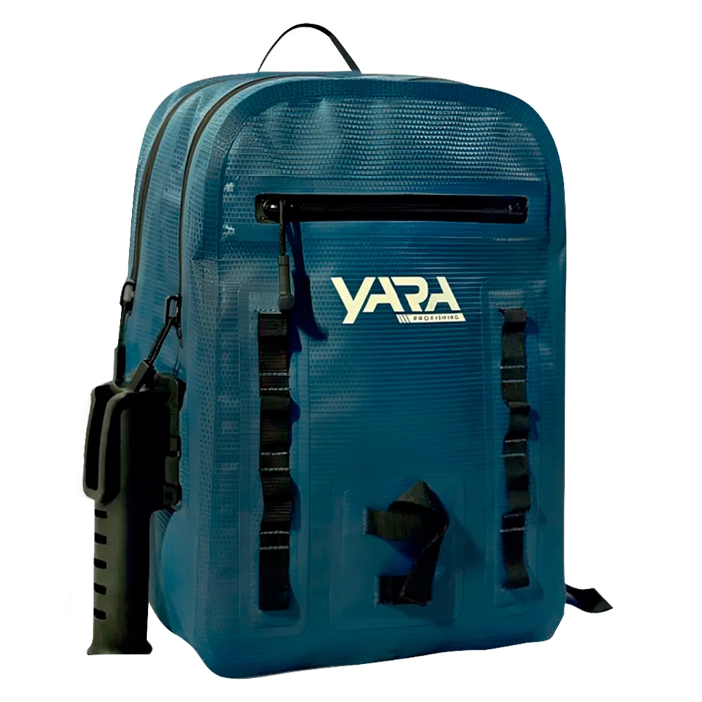Fabricada em composição de PVC tarpaulin totalmente impermeável a composição de suas alças em poliéster, essa é uma mochila que não pode ficar de fora de sua pescaria.