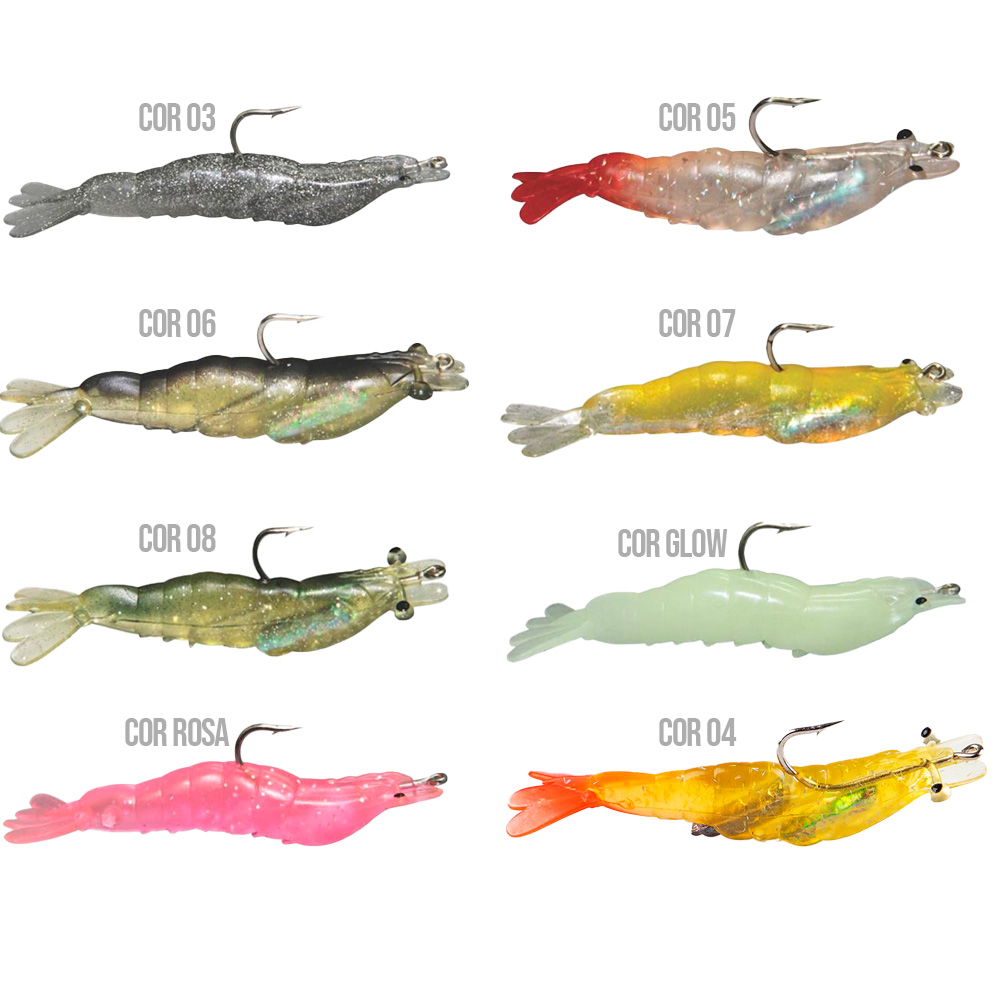 O modelo silicone Camarão é uma das iscas mais famosas para pesca de diversos tipos de peixes, ela contém uma Super Fórmula do seu material, com essência impregnados na isca, que atraem muito mais predadores. Pois o peixe fica mais tempo com a isca na boca, simulando o gosto de sua presa, facilitando a fisgada e garantindo mais capturas.