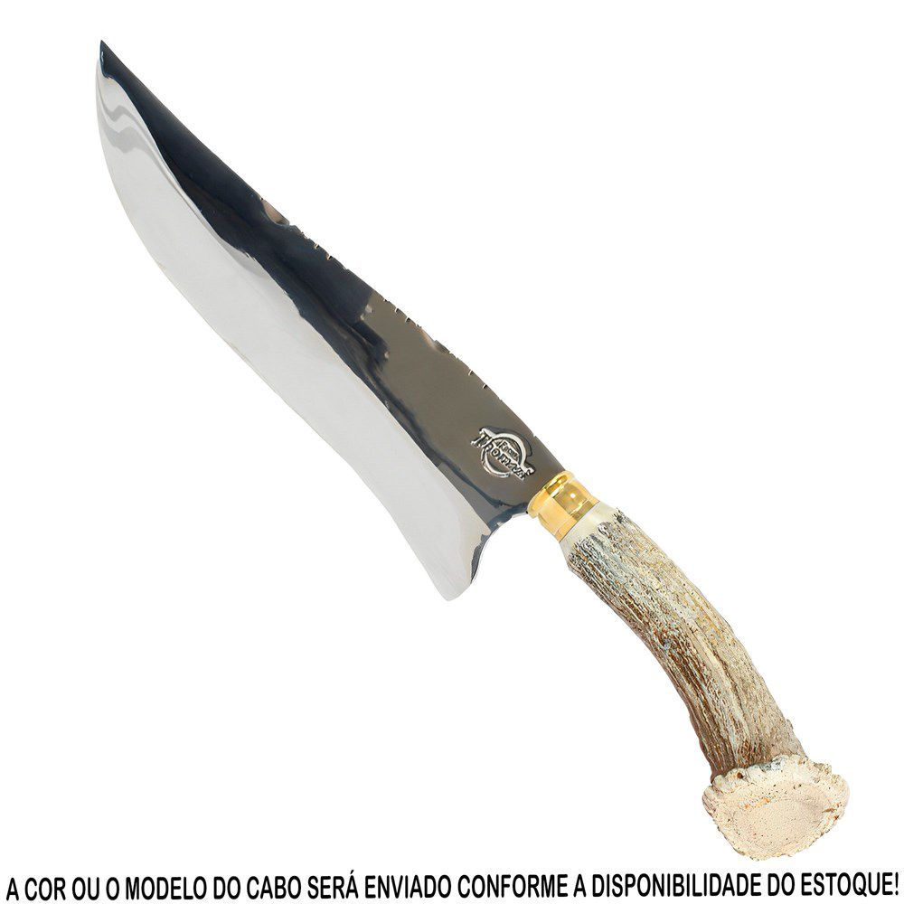 O cabo da faca é fabricado em Chifre de Cervo com 14cm de comprimento, garantindo uma empunhadura confortável e segura, permitindo que você domine cada corte com facilidade e precisão.