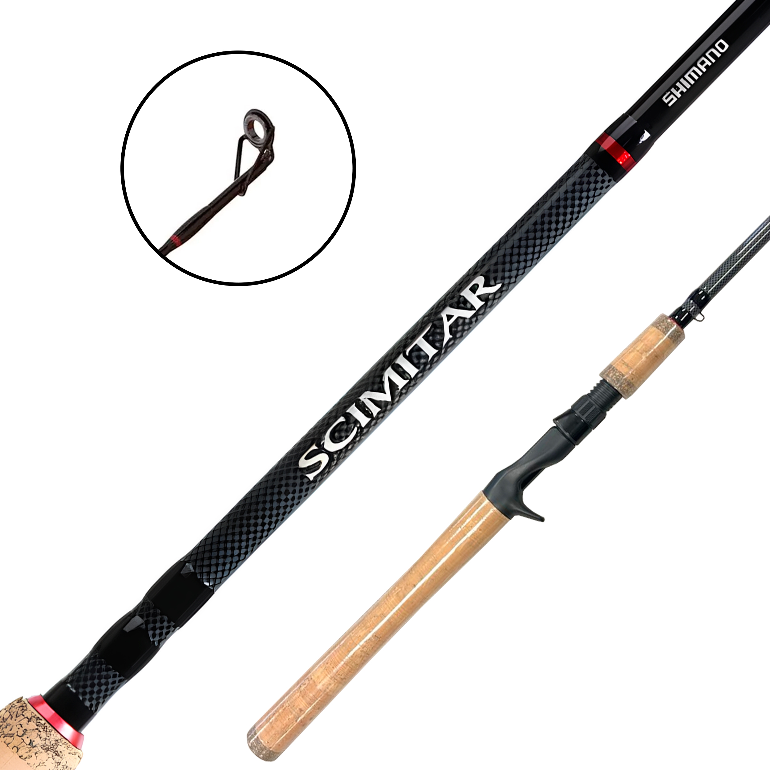 • Vara Scimitar SMC66MHB: 1,98m | Passadores: 4 (Pata dupla) + 4 (Pata simples) + 1 (Ponteira) | Ação: Rápida | 10-20 Lbs; | Peso: 150g | Interiça | Cabo: 23cm