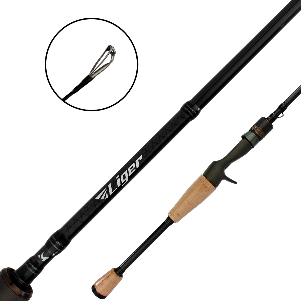 - Vara Liger LG-C561MLF: 1,68m | Passadores: 2 (Pata dupla) + 6 (Pata Simples) + 1 (Ponteira) | Ação: Rápida | 10-14 Lbs; | Peso: 100g | Inteiriça | Casting: 6g a 14g | Cabo: 21cm
