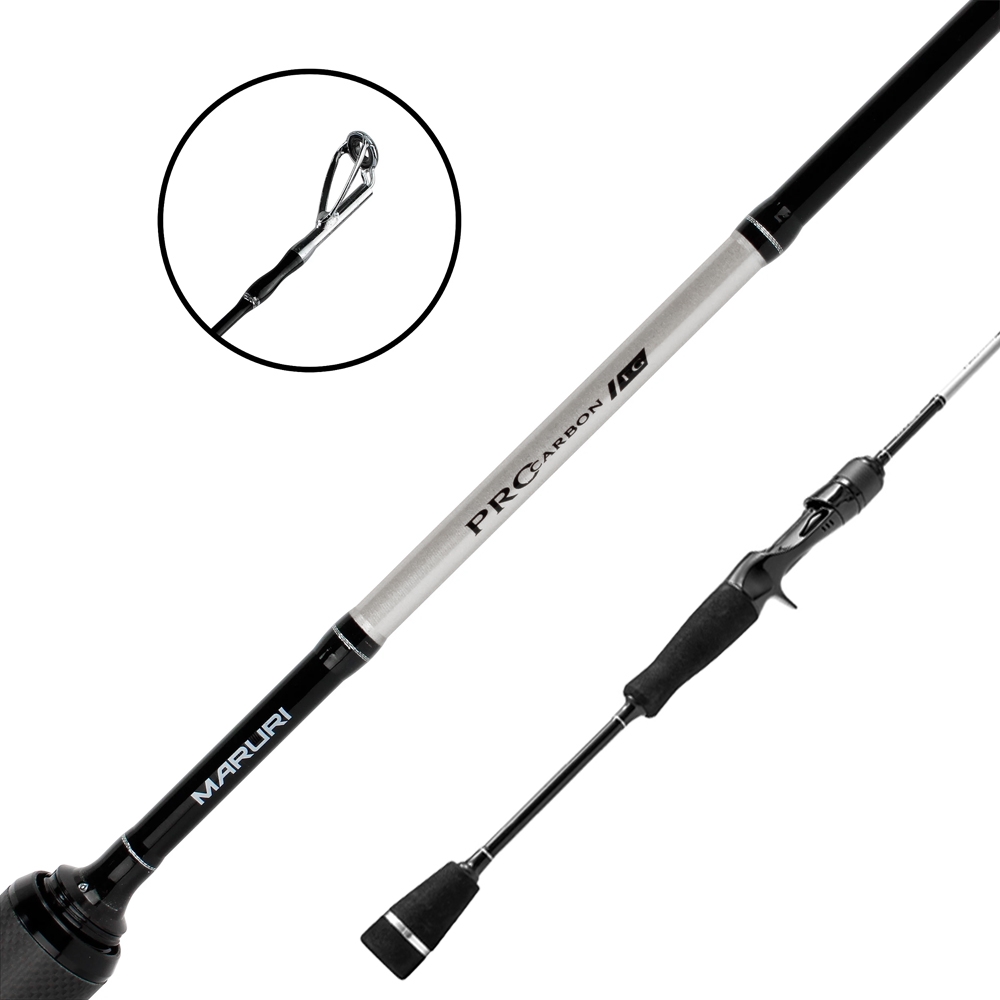 • Vara Pro Carbon PRC-C25-561H: 1,68m | Passadores: 3 (pata dupla) + 5 (pata simples) + 1 (Ponteira) | Ação: Rápida | 12-25 Lbs; | Peso: 150g | Inteiriça | Casting: 12g a 36g | Cabo: 21cm